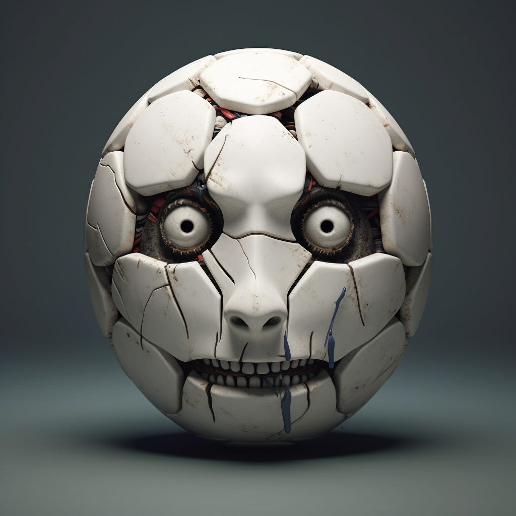 Other soccer balls were scattered around him, some of them old and deflated, others shiny and new. He felt a strange kinship with these objects, even as he longed to return to his human form.
